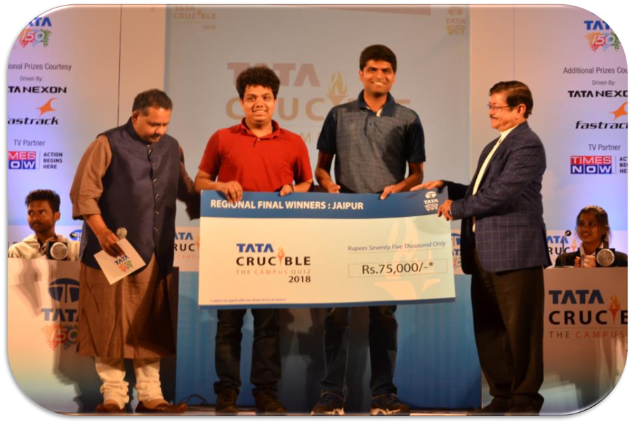 Quizzing is big in Jaipur. It always has been especially with campuses especially when it comes to Tata Crucible. Close to 800 people were part of the quiz this time around. With loads of excitement in the air, quizmaster Pickbrain was at his best with his questions and wit. The finalists who qualified were:
