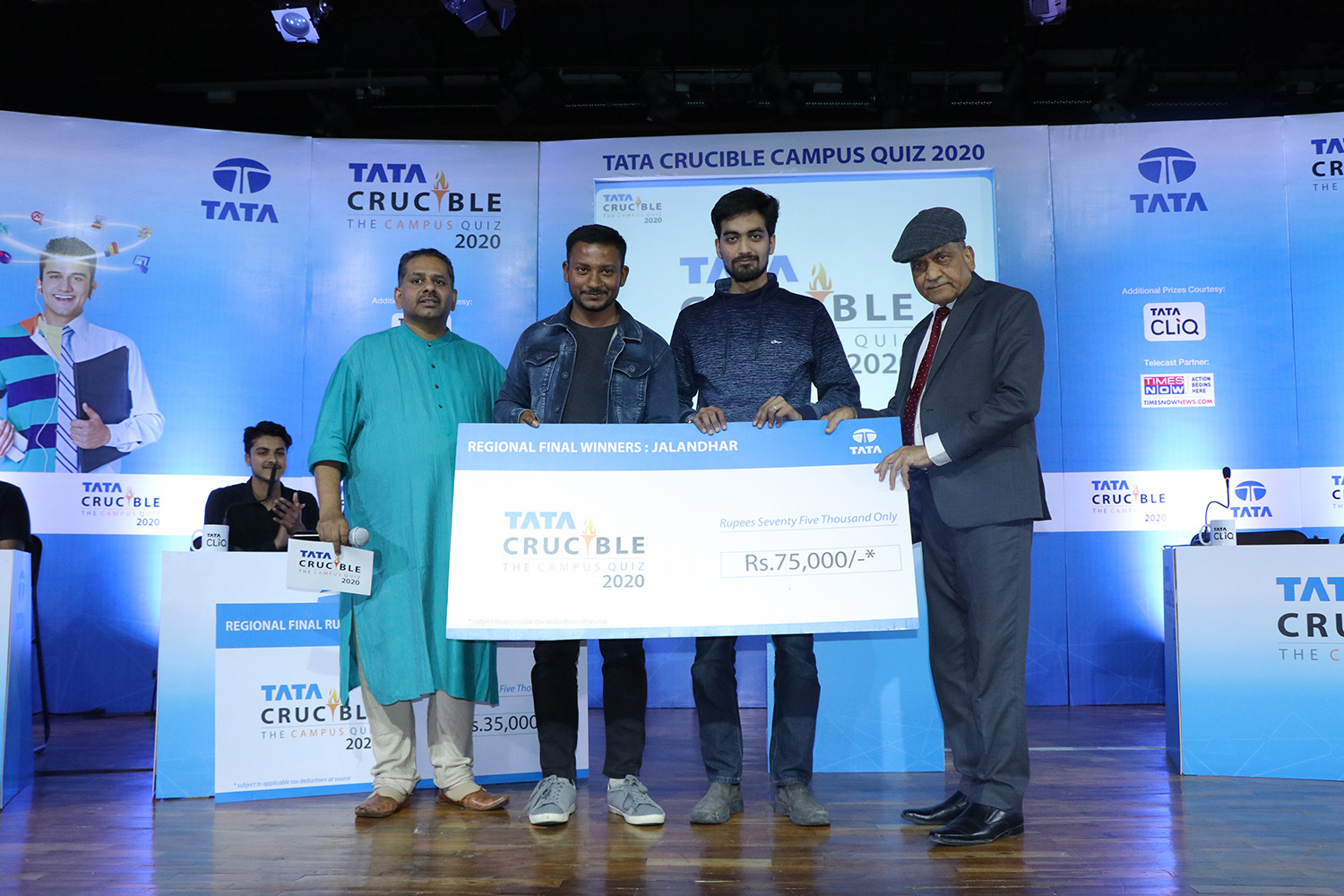 Over 1200 students were part of the Jalandhar edition of Tata Crucible. With hardly any space in the auditorium, quiz host Ms. Rashmi Furtado managed the huge crowd brilliantly with her witty remarks. She was also brisk with the questions which turned out to be an entire set of visuals. The teams that progressed were: