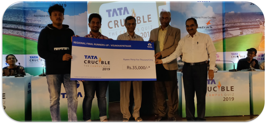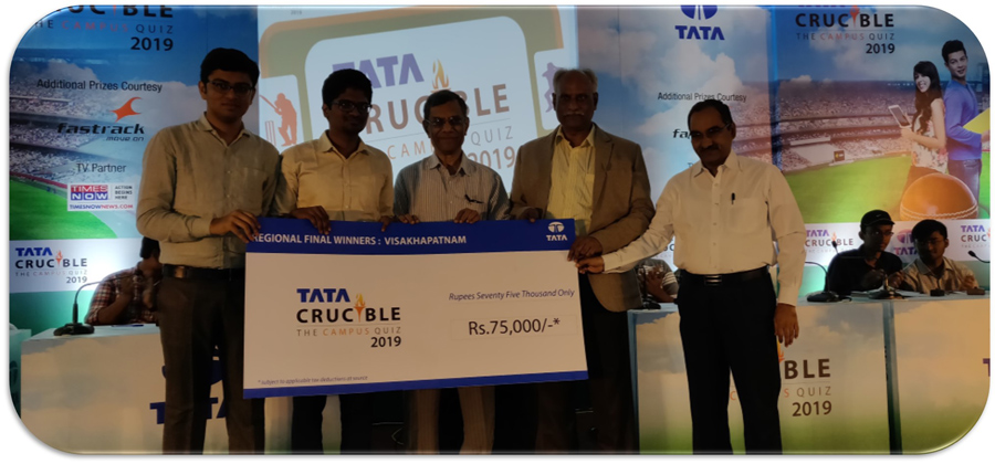 It felt like one was entering a stadium at Vizag with all the hoardings and posters welcoming the players. Match 13 of the 2019 Tata Crucible for campuses was underway at the GITAM campus. The quiz witnessed close to 1000 students thronging the auditorium with over 390 teams.